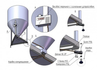 Устройство состоит из трех или четырех тензорезисторных датчиков, которые монтируются под опоры смесителя. Текущий вес продукта в смесителе отображается на основном дисплее весоизмерительного преобразователя (терминала). «Агродоз 163» оснащается терминалом с двумя дисплеями. На второй индикатор выводятся показания счетчиков компонентов смеси. В соответствии с параметрами рецепта, хранящимися в памяти терминала, в процессе загрузки выдаются звуковые сигналы, информирующие оператора об окончании набора очередного компонента и необходимости перехода к следующему компоненту.  Комплект тензодатчиков с терминалом может быть откалиброван, как на предприятии-изготовителе, так и на месте эксплуатации.